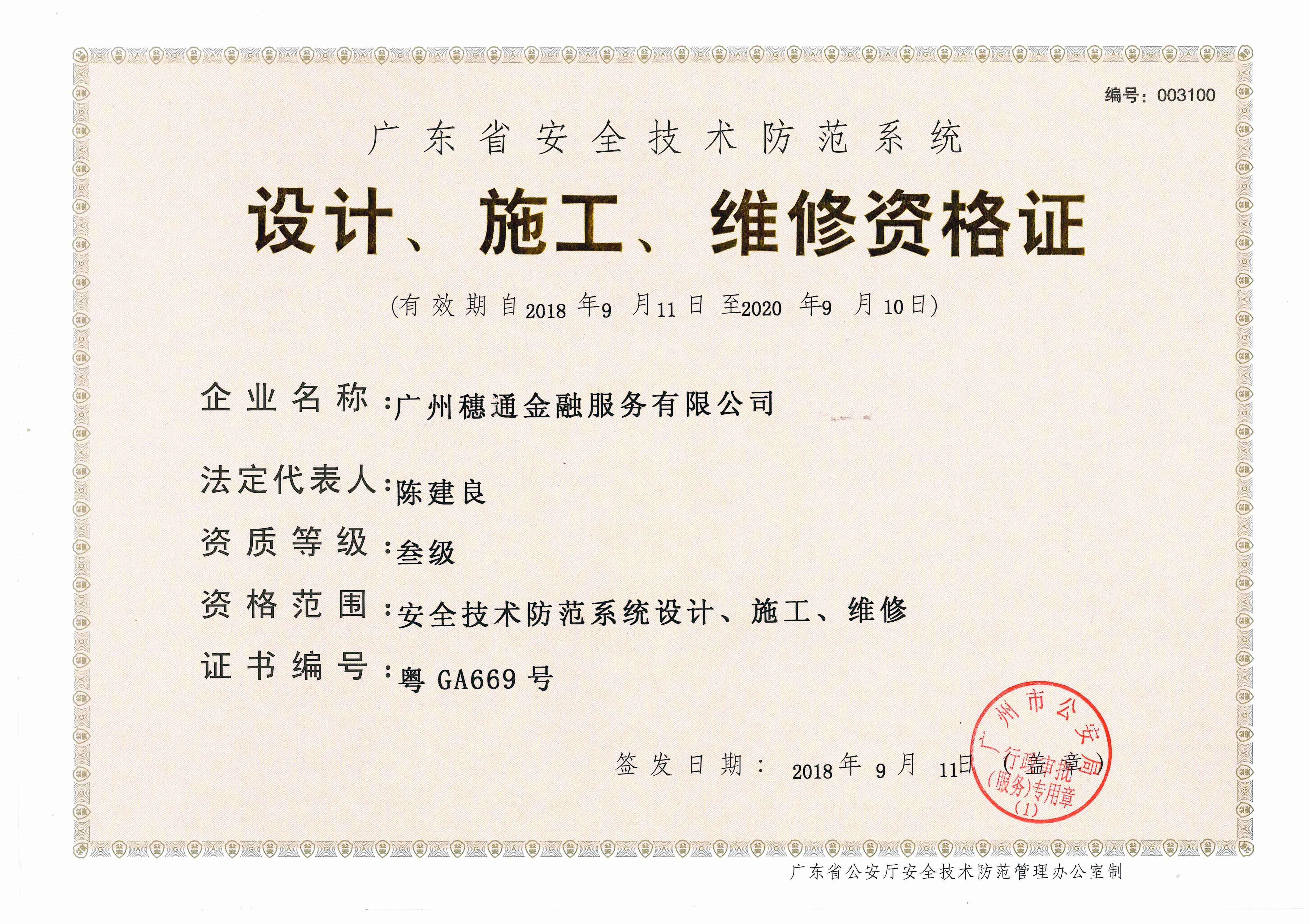 廣東省安全技術防范系統設計、施工、維修資格證(貳級)